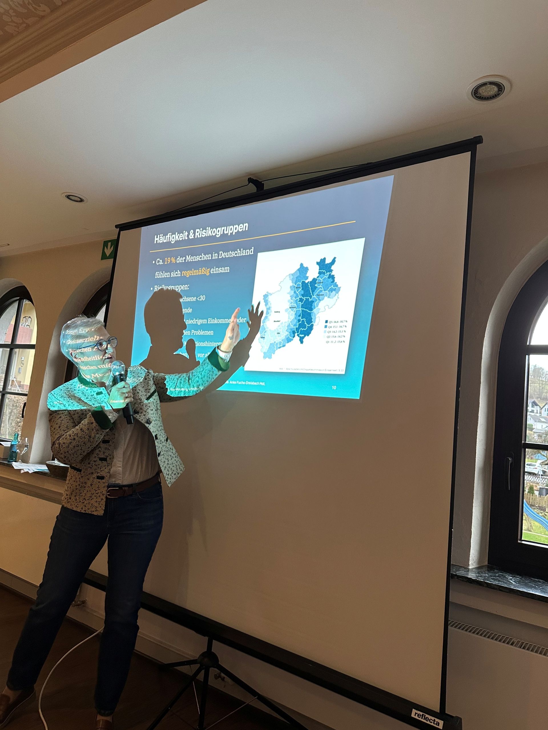 Besonders aufmerksam verfolgten die Teilnehmenden die Ergebnisse einer wissenschaftlichen Umfrage der Enquetekommission: Demnach fühlen sich gerade im ländlichen Raum des Sauerland und des Siegerland zwischen 16,6 und 18,7 Prozent der Menschen einsam.