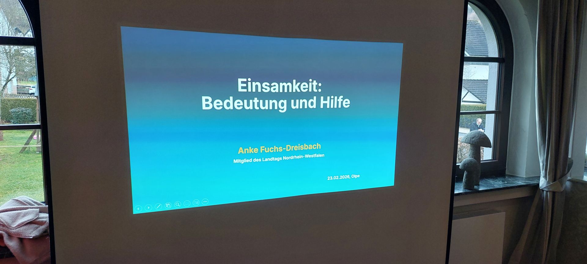 Ob staatliche Förderangebote aus dem Aktionsplan „Du+Wir=Eins“ genutzt werden oder ob es oft schon hilft, im direkten Umfeld aufmerksam zu sein – etwa durch eine Einladung zum Spaziergang oder ein offenes Gespräch – bleibt eine individuelle Entscheidung. Einig waren sich jedoch alle Teilnehmenden darin, dass der Vortrag und die lebhafte Diskussion für das Thema Einsamkeit nachhaltig sensibilisiert haben.
